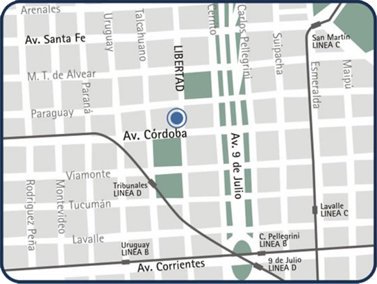 Colectivos 5B / 26 / 26 / 115-A / 132-A / 132-B / 140-A / 140-B / 142-A Línea de Subte Línea D, Estación Tribunales.